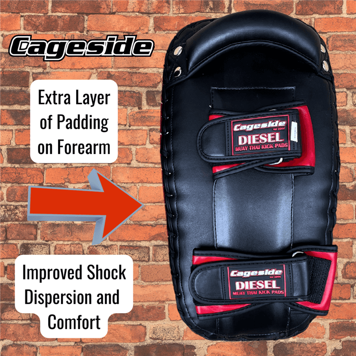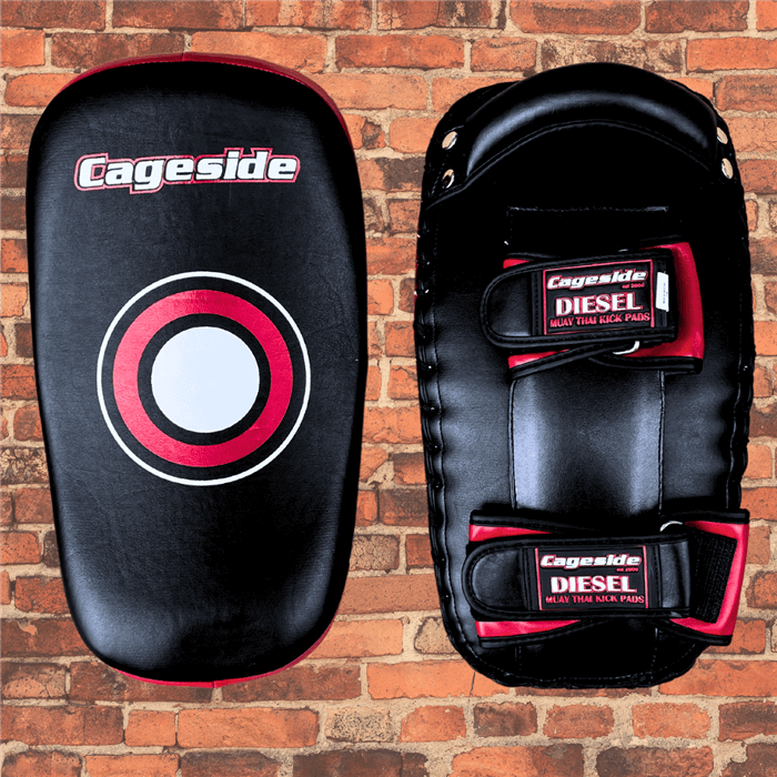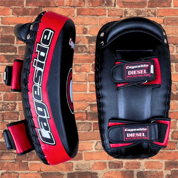 Cageside "Diesel" Pro Curved Thai Pads - Black & Red